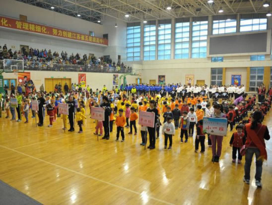12月20日上午,金宝宝莱茵东郡幼儿园第二届亲子运动会在江宁高级中学室内体育馆举行。开幕式中不仅有各年级组小朋友的队列变换和韵律操展示,而且还有全园保教人员的团体健美操表演,以及各年级组温情的亲子操。在综合运动游戏项目时,更显热闹非凡,混龄亲子运动员在各领队的带领下有序参加比赛,小朋友和爸妈们一起快乐地体验与游戏着……最后角逐出三组金、银、铜奖和五项团体奖。