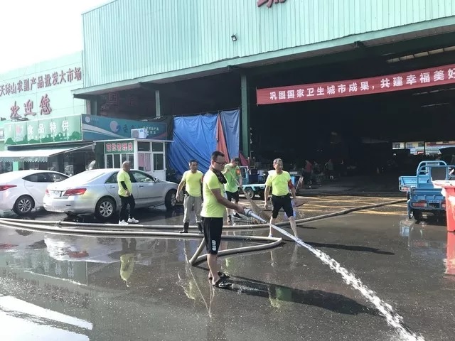天印山农贸全员奋战迎接“南京市创建卫生城市”复审