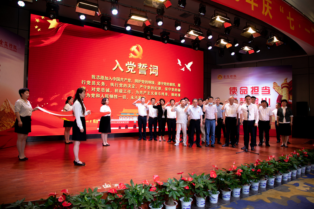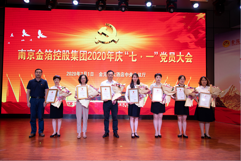 为纪念中国共产党建党99周年,7月1日下午,集团隆重举行庆七·一党员大会,选举产生集团新一届党委,对十佳党员和“金箔战疫”先进基层党组织进行表彰,表达金箔人坚定跟党走的决心和对党的事业的忠诚热爱。集团董事局成员、集团在职与退休老党员、入党积极分子共同参加会议。江宁区工信局党群室宋作彬主任出席会议。
